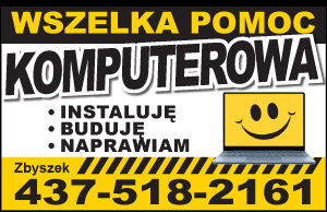 Rozwiązuję problemy z internetem i komputerem. Instaluję programy. Naprawiam komputery. Buduję tanie a dobre komputery dla Ciebie. Buduję strony WWW. Zbyszek 437-518-2161m www.friendlyrobot.ca.