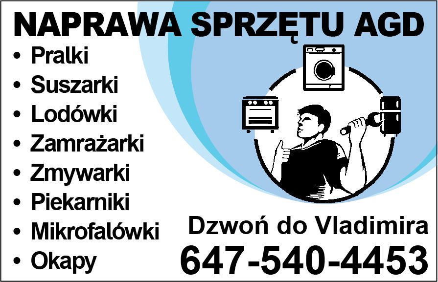 Naprawiam sprzęt AGD - dzwoń do Vladimira 647-540-4453